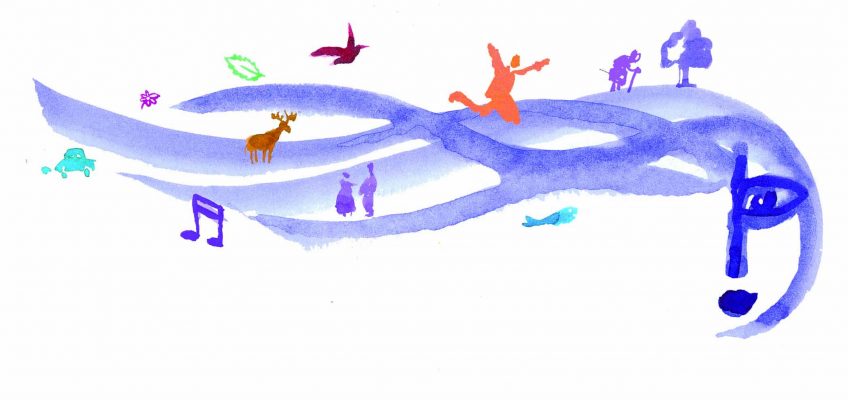 De mon côté, dans cette histoire j’ai commencé par faire un simple « remplissage » entre les contes, en jouant des petits airs de musique pour laisser respirer la parole. Puis progressivement je me suis de plus en plus impliqué dans la création. Je trouve passionnant le travail qui consiste à élaborer de ambiances musicales ou sonores qui collent au plus près de l’esprit du moment. Parfois c’est des notes, parfois de la voix, parfois des bruits… des atmosphères, quoi. Ca a un côté ludique que je ne trouve pas toujours dans des groupes de musique… Ce qui est très étonnant, c’est la manière dont ces ambiances musicales peuvent faire considérablement évoluer la manière dont les histoires sont racontées, voire inspirer de nouvelles histoires… Une vraie création multi artistique.